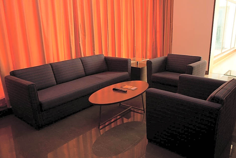 This suite features a bathrobe, satellite TV and seating area.
